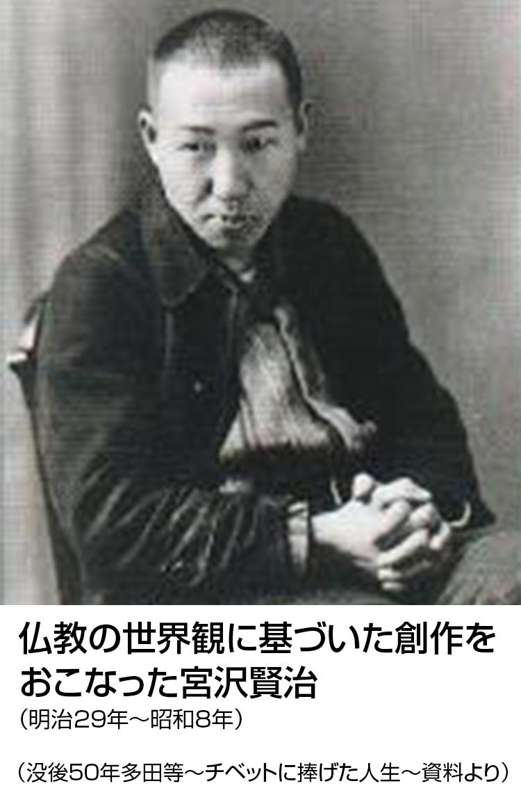 仏教徒であった宮沢賢治は、日本で手に入る範囲の経典や西域旅行記を目にし、チベットへ空想の翼を広げ、誌や童話の素材に、その世界観を取り込んだといわれています。